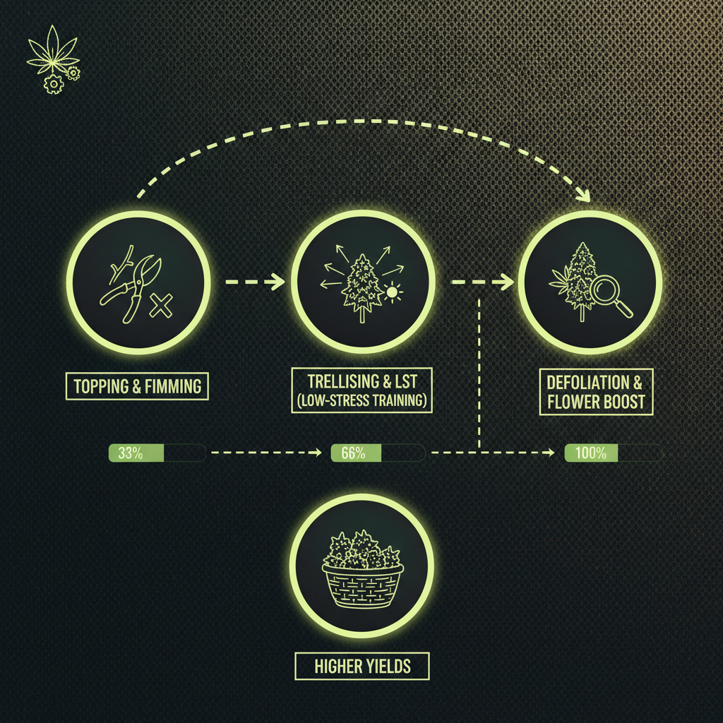 That balance matters even more with advanced pruning cannabis methods like topping, selective defoliation, and lollipopping.
