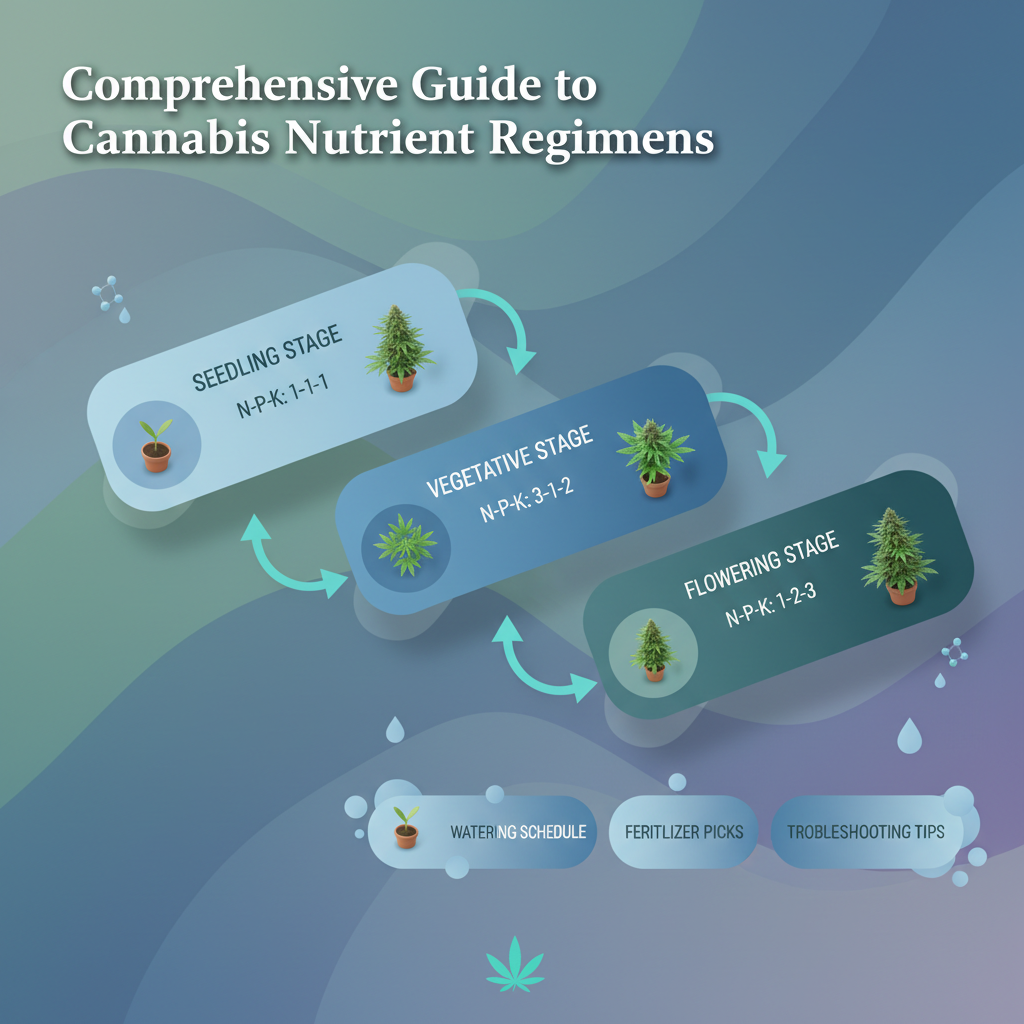 Build your cannabis nutrient regimen around plant stage—seedling, veg, and flower (3 distinct phases)—and adjust feed based on leaf cues like yellow tips or clawed leaves instead of following the same chart every week.